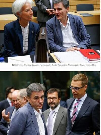 Ο Ευκλείδης Τσακαλώτος μιλά με Κριστίν Λαγκάρντ και Αλεξάντερ Στουμπ