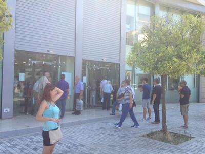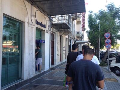 Το βασικό θέμα συζήτησης έξω απο κάθε τραπεζικό κατάστημα της Πάτρας, ειδικά σήμερα το πρωί και μετά την είδηση της συμφωνίας, ήταν "πότε θα ανοίξουν οι τράπεζες κανονικά". Η Δευτέρα βρήκε από τα ξημερώματα πολλούς να αναμένουν υπομονετικά στις ουρές των ΑΤΜ για να σηκώσουν όποια χρήματα τους έχουν απομείνει.