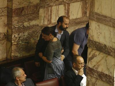 Στη... Γαλαρία της Ολομέλειας οι Αχαιοί βουλευτές του ΣΥΡΙΖΑ Βασίλης Χατζηλάμπρου και Μαρία Κανελλοπούλου