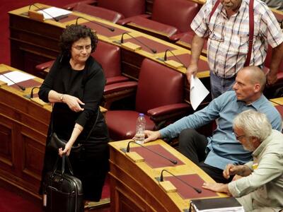 Η Ζωή Κωνσταντοπούλου αποχωρεί από το προεδρείο. Δείτε το βλέμμα των υπόλοιπων παρισταμενων.