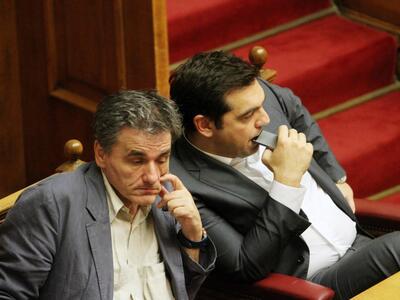 Το άγχος του Πρωθυπουργού Αλέξη Τσίπρα στη διάρκεια της χθεσινής ψηφοφορίας για τα προαπαιτούμενα μέτρα στην ολομέλεια της Βουλής κατέγραψε ο φωτογραφικός φακός. Δίπλα του ο Υπουργός Οικονομικών Ευκλείδης Τσακαλώτος στην ...ίδια κατάσταση...