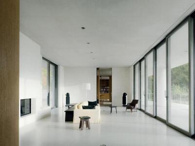 Έντεκα μεγάλες κολόνες συγκρατούν την επίπεδη οροφή του, κάνοντας το, όπως λένε, να μοιάζει περισσότερο με ένα βιομηχανικό συγκρότημα ή ένα πολεμικό καταφύγιο, παρά με μια οικία.