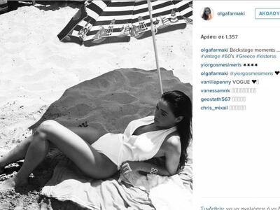 Πριν λίγο ωστόσο ανέβηκαν δυο φωτογραφίες σαν από σελίδες περιοδικού άλλης εποχής . Ο λόγος για την Όλγα Φαρμάκη. Το όμορφο μοντέλο δημοσίευσε στο instagram μια φωτογραφία της με λευκό ολόσωμο μαγιό σε στυλ ΄50ς .