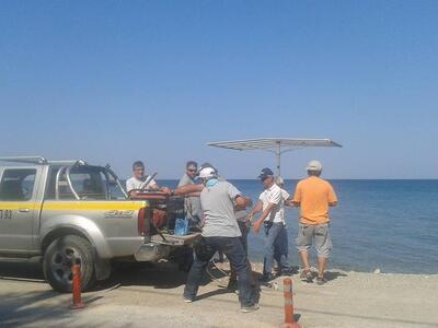 Τέντες για τους λουόμενους τοποθετούσαν σήμερα το πρωί συνεργεία του Δήμου Πατρέων στην είσοδο της πλαζ, εκεί όπου συρρέει πλήθος ηλικιωμένων λουόμενων.