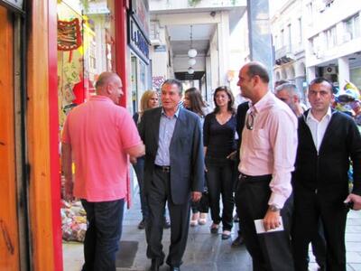 Την Οδό Κανακάρη επισκέφτηκε σήμερα το απόγευμα ο υποψήφιος Δήμαρχος Πατρέων κ. Δημήτρης Κατσικόπουλος. Οι καταστηματάρχες μίλησαν με τον υποψήφιο δήμαρχο και τους υποψηφίους δημοτικούς συμβούλους που τον συνόδευαν για τα προβλήματα τους και του ζήτησαν μια πιο καθαρή, ανθρώπινη και φιλόξενη πόλη όπου το παρκάρισμα δεν θα είναι βάσανο για αυτούς που θα θέλουν να μπουν στο ιστορικό – εμπορικό κέντρο της Πάτρας και να ψωνίσουν από τα καταστήματα τους.