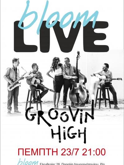 Στον κήπο του bloom, στην παραλία Δημορηγόπουλου, στο Ρίο, θα «τζαζάρουν», την ερχόμενη Πέμπτη 23 Ιουλίου, το βράδυ, οι Groovin’ High. Το μουσικό ταξίδι σε ρυθμούς swing, bossa nova, waltz, bolero θα ξεκινήσει στις 21:00.