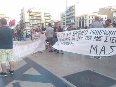 Η συγκέντρωση διαμαρτυρίας (αντίστοιχη μαζί και πορεία έγινε νωρίτερα το απόγευμα της Τετάρτης 22 Ιουλίου 2015 και στην Ομόνοια στην Αθήνα ενώ συλλαλητήριο πραγματοποίησε η ΑΔΕΔΥ στα Προπύλαια και πορεία προς το Σύνταγμα) διοργανώθηκε με σκοπό ο κόσμος να εκφράσει την αντίθεση του στο δεύτερο νομοσχέδιο με τα προαπαιτούμενα της νέας συμφωνίας με τους εταίρους δανειστές μας που απόψε τίθενται προς ψήφιση στη Βουλή.