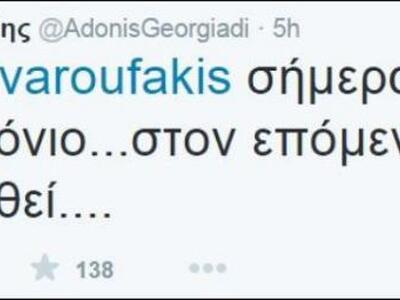 Μέσω του λογαριασμού του στο twitter σχολίασε ο κοινοβουλευτικός εκπρόσωπος της ΝΔ, Άδωνις Γεωργιάδης, την επιλογή του Γιάνη Βαρουφάκη να υπερψηφίσει το νομοσχέδιο.