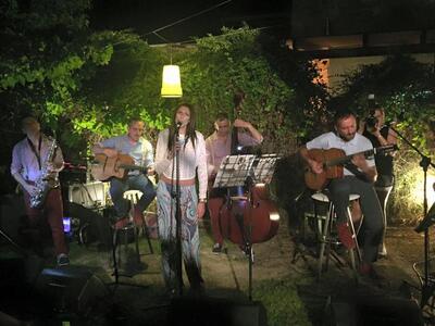 Στον κήπο του bloom στο Ρίο «τζάζαραν» χθες βράδυ της Πέμπτης οι Groovin’ High σε μια ξεχωριστή βραδιά, ένα μουσικό ταξίδι σε ρυθμούς swing, bossa nova, waltz, bolero ξεκίνησε στις 21:00. Η ατμόσαφιρα ήταν χαλαρή και κεφάτη, με θέα θάλασσα στον ατμοσφαιρικό κήπο του Bloom. Ο οικοδεσπότης ο Ανδρέας Βρης δεχόταν συγχαρητήρια.