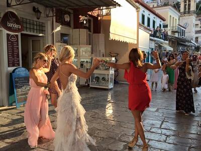 Πολλοί Πατρινοί φίλοι του ζευγαριού έδωσαν το παρών από την παραμονή, οπότε πραγματοποιήθηκε pre wedding party και μοιράστηκαν μαζί τους τις πιο όμορφες στιγμές τους. Κουμπάρα ήταν η Αγαθή Φλώρου.