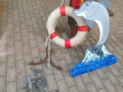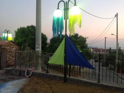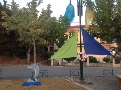 Η γειτονιά, πέρα από τους ερασιτέχνες εργάτες που έστησαν αυτή την παραλία, μεταφέροντας όπως βλέπετε και μεγάλες ποσότητες άμμου, έχει και τους καλλιτέχνες της που δημιουργούν από απλά υλικά που δεν τα πιάνει η φαντασία, ανακυκλώσιμα κυρίως, τα εικαστικά του πράγματος και δωράκια για τους επισκέπτες.