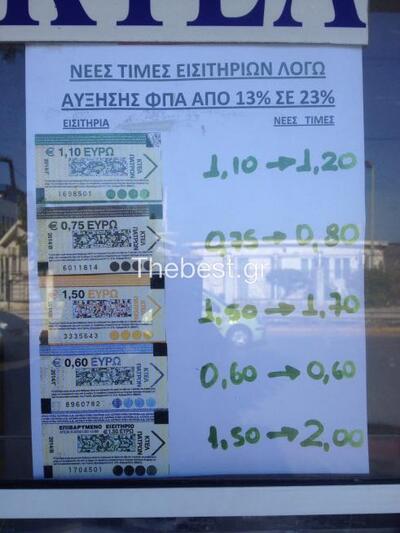 "Σήμερα το πρωί καθώς κατέβαινα από το λεωφορείο είδα ανακοίνωση για αύξηση στις τιμές των εισιτηρίων αλλά δεν πρόλαβα να δω από πότε ισχύουν"
