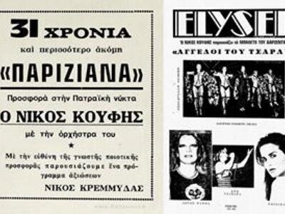 Γεμάτη αναμνήσεις είναι η αφίσσα που αλιεύσαμε από το fb από την Παριζιάνα και τον αξέχαστο μαέτσρο Νίκο Κούφη, που έφυγε χθες από τη ζωή. Ο Νίκος Κούφης, για πολλά χρόνια εργαζόταν ως μουσικός και μαέστρος στην Παριζιάνα και στη συνέχεια δημιούργησε το δικό του νυχτερινό μαγαζί, το La Notte.
