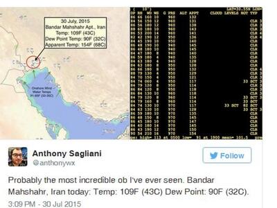 Η πόλη BandarMahshahr, με πληθυσμό 110.00 κατοίκους το 2010, βρίσκεται δίπλα στον περσικό Κόλπο στο νοτιοδυτικό Ιράν. Ο συνδυασμός της υγρασίας και της πολύ υψηλής θερμοκρασίας κλίμα κάνει την αίσθηση του αέρα να αγγίζει τους 67,8 Κελσίου στην πόλη Bandar Mahshahr δημιουργώντας ένα αποπνικτικό κλίμα.