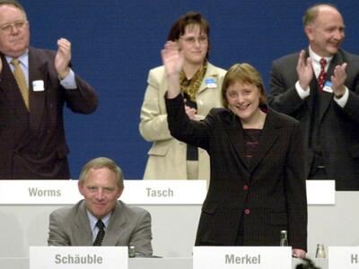 Το κόμμα ζητάει μια καινούργια αρχή και φυσικά ήταν η κατάλληλη στιγμή για να βγει στον αφρό η Μέρκελ. H τότε γενική γραμματέας του κόμματος έγραψε ένα άρθρο στην FAZ, χωρίς να ρωτήσει τον Κολ, στο οποίο έλεγε πως το κόμμα πρέπει να προχωρήσει μπροστά και να αφήσει το παρελθόν πίσω. Ο Κολ το θεώρησε προδοσία. Λίγους μήνες μετά η Μέρκελ παίρνει τη θέση του Σόιμπλε.