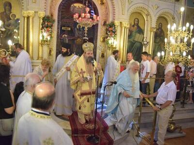 Στό κήρυγμά του ὁ Σεβασμιώτατος ἀνεφέρθη στό γεγονός καί μέγα θαῦμα τῆς Μεταμορφώσεως τοῦ Κυρίου ἐπί τοῦ Ὂρους Θαβώρ καί ἐξήγησε τά περί τοῦ θαύματος βάσει τῆς διδασκαλίας τῶν ἁγίων Πατέρων τῆς Ἐκκλησίας μας καί κυρίως βάσει τῆς διδασκαλίας τοῦ Ἁγίου Γρηγορίου Παλαμᾶ, ὁ ὁποῖος ὁμιλεῖ περί τῆς πράξεως ( τύπος τῆς πράξεως ὁ Προφήτης Ἠλίας) καί θεωρίας (τύπος τῆς θεωρίας ὁ προφήτης Μωυσῆς) καί θεολογίας (ὁ Ἰησοῦς Χριστός). Ἡ ὡς ἂνω διδασκαλία τοῦ Ἱεροῦ Πατρός ἀναφέρεται στό «καλόν ἐστίν ἡμᾶς ὧδε εἶναι· καὶ ποιήσωμεν σκηνὰς τρεῖς, σοὶ μίαν καὶ Μωϋσεῖ μίαν καὶ ᾿Ηλίᾳ μίαν» (Μάρκ, 9, 5) καί κατέληξε ὁ Σεβασμιώτατος ὃτι πρέπει νά προχωρήσωμε ἀπό τήν πράξη στή θεωρία καί στήν θεοπτία, στή θέα, δηλαδή, τοῦ προσώπου τοῦ Θεοῦ καί τήν βίωση τῆς μετ’ Αὐτοῦ κοινωνίας καί τοῦ ἀκτίστου Φωτός τῆς Μεταμορφώσεως Αὐτοῦ.
