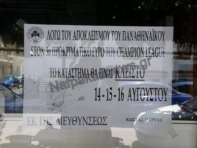 Ο Κώστας Πύργας, δεν άντεξε την ήττα του Παναθηναικού από την Μπρίζ κι αποφάσισε να κλείσει το καφενείο του, όπως ενημερώνει τους πελάτες του στην αφίσα που τοποθέτησε στη τζαμαρία!