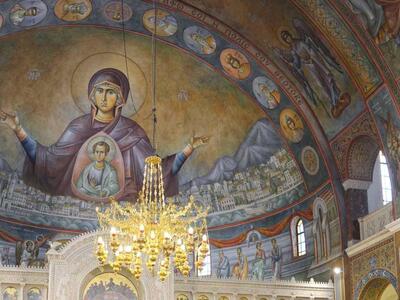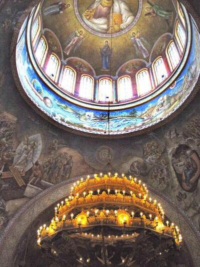 Ο κεντρικός πολυέλαιος είναι ένα πραγματικό αριστούργημα. Το δάπεδο είναι κατασκευασμένο από μάρμαρο, με θαυμάσιες παραστάσεις.