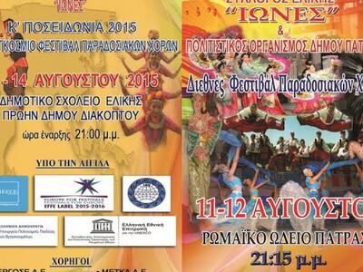 «Στο πλαίσιο του 11ου Παγκόσμιου Φεστιβάλ Παραδοσιακών Χορών στο Αίγιο, διοργανώνουμε σε συνεργασία με τον Πολιτιστικό Οργανισμό του Δήμου Πατρέων, το διήμερο παραδοσιακών χορών στο Ρωμαϊκό Ωδείο της Πάτρας, θέλοντας να μεταφέρουμε σε ένα μεγάλο φόρουμ ειρήνης και συναδέλφωσης των λαών, πολιτισμούς ήθη και έθιμα από όλα τα μέρη του κόσμου, δημιουργώντας ταυτόχρονα μελλοντικές συνεργασίες πολιτιστικού περιεχομένου με τον Πολιτιστικό Οργανισμό του Δήμου Πατρέων. Για περισσότερες πληροφορίες δε, όποιος το επιθυμεί, μπορεί να μπει στο site του Συλλόγου μας www.iones-eliki.gr».