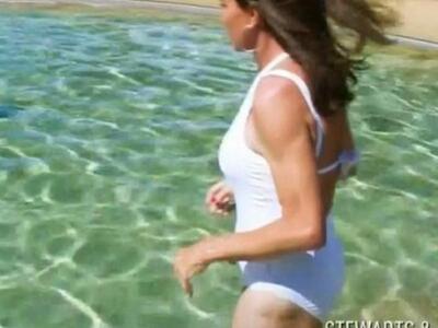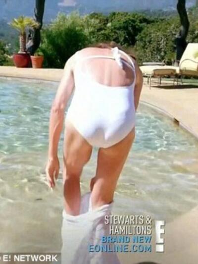 Μπορεί να δίσταζε στην αρχή, αλλά δεν έκανε πίσω και βούτηξε με το λευκό, κομψό ολόσωμο μαγιό που ήταν δώρο της Κιμ Καρντάσιαν.