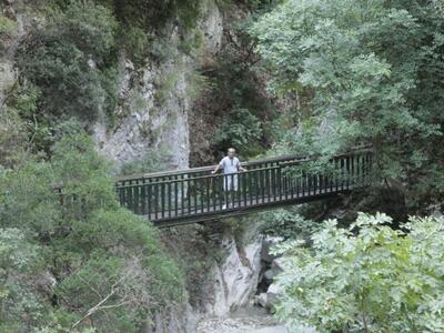 Η πρώτη σε κατευθύνει σε ένα υπερυψωμένο πλακόστρωτο αλλά πολύ στενό μονοπάτι που σε βγάζει σε μια ξύλινη γέφυρα από όπου η θέα του ποταμού ήταν μαγεία και στο τέλος του δρόμου έφθανες σε διάφορες μικρές λιμνούλες που σχηματίζονταν από το ορμητικό ποτάμι.