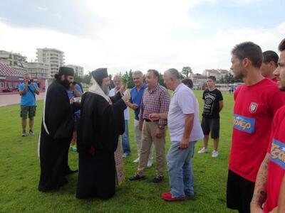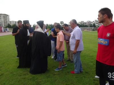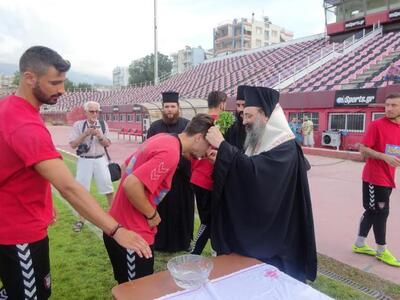 Ὁ Πρόεδρος, τά μέλη τοῦ Διοικητικοῦ Συμβουλίου, οἱ Προπονητές (ο Δημήτρης Σπανός), ὁ Ἰατρός τῆς ὁμάδος καί οἱ Παῖκτες, ἀσπάστηκαν μέ εὐλάβεια τόν Τίμιο Σταυρό καί ἔλαβαν ὡς εὐλογία ἀπό τόν Σεβασμιώτατο ἀπό μία εἰκόνα τῆς Παναγίας ἐνῶ αντίστοιχα τοῦ προσέφεραν εἰς ἀνάμνησιν τῆς πρώτης ἡμέρας τῆς ποδοσφαιρικῆς χρονιᾶς καί τοῦ ἁγιασμοῦ καί εἰς ἔνδειξη σεβασμοῦ στό πρόσωπό του, μία μπάλα ποδοσφαίρου μέ τίς ὑπογραφές τῶν παικτῶν, τό λάβαρο τῆς ὁμάδος καί μία φανέλα μέ τά χρώματα τῆς πατρινῆς ὁμάδος.