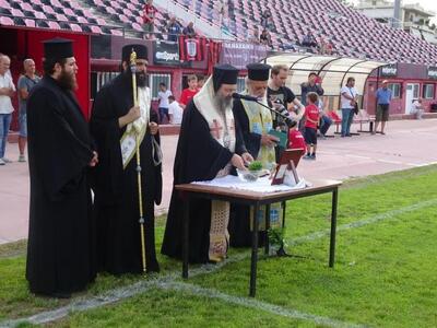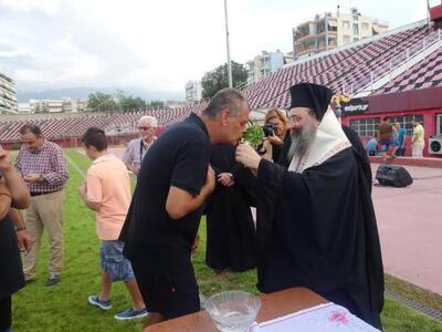 Κατόπιν εὐγενοῦς προσκλήσεως τοῦ Προέδρου, τοῦ Διοικητικοῦ Συμβουλίου καί τῶν Παικτῶν τῆς Παναχαϊκῆς, ὁ Σεβασμιώτατος Μητροπολίτης Πατρῶν κ.κ. Χρυσόστομος, ἐτέλεσε τόν ἁγιασμό (το απόγευμα της Τετάρτης 12/8) στό γήπεδο τῆς ὁμάδος, μέ τήν εὐκαιρία τῆς ἔναρξης τῆς νέας ποδοσφαιρικῆς χρονιᾶς.
