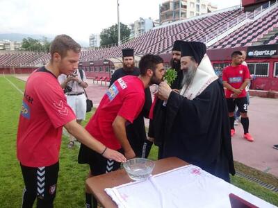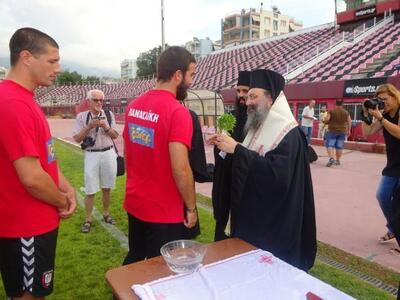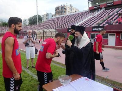 Τον αγιασμό τέλεσε ο σεβασμιότατος Μητροπολίτης Πατρών κ.κ. Χρυσόστομος, ο οποίος και ευχήθηκε καλή επιτυχία στην ομάδα στο νέο πρωτάθλημα της Football League.