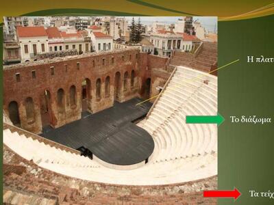 Συμβολίζοντας έτσι το νέο τρόπο ζωής των κατοίκων της Πάτρας, βασισμένο στα ρωμαϊκά πρότυπα, με σεβασμό στο ελληνικό παρελθόν, κυρίως των ελευθεριών, που πρεσβεύει το θέατρο. Η αλήθεια είναι ότι το ρωμαϊκό Ωδείο αποτελεί ένα μνημείο μοναδικό για την πόλη της Πάτρας.