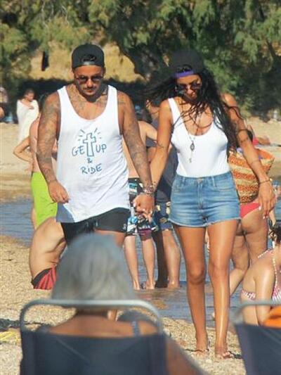Την Τρίτη 11 Αυγούστου το ζευγάρι απαθανατίστηκε στην παραλία Λιβάδι Γερανού σε ιδιαίτερα τρυφερές στιγμές.