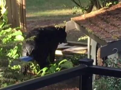 Αυτή τη φορά είχαν φροντίσει να μην αφήσουν τίποτα εκτός σπιτιού, έκπληκτοι όμως, με την επιστροφή τους από τις διακοπές, αντίκρισαν την αρκούδα στην αυλή να απολαμβάνει την πισίνα και το τζακούζι τους. Όπως διαπίστωσαν αργότερα, το μεγάλο θηλαστικό είχε ισοπεδώσει τον φράχτη, προκειμένου να μπουκάρει στον κήπο.
