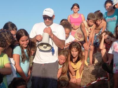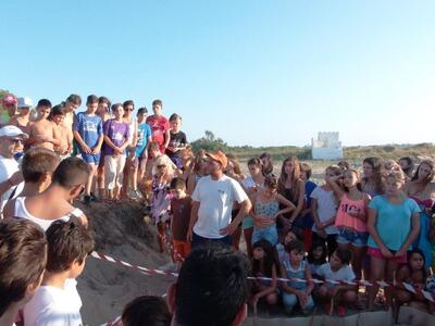 Ο επιστημονικός υπεύθυνος του προγράμματος περιβαλλοντολόγος Μαμάσης Διονύσης ενημέρωνε το κοινό για το απειλούμενο είδος, τη βιολογία του και τη διαδικασία εκσκαφής που ακολουθήθηκε ενώ ο ερευνητής πεδίου Τζώρας Ηλίας άνοιγε την φωλιά σημειώνοντας το ποσοστό επιτυχίας εκκόλαψης των αυγών.