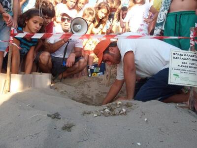 Πραγματοποιήθηκε με επιτυχία η 1η ανοιχτή δημόσια εκσκαφή φωλιάς θαλάσσιας χελώνας Caretta caretta την Πέμπτη 20 Αυγούστου στα Λεχαινά Ηλείας και στις κατασκηνώσεις Green Camp.
