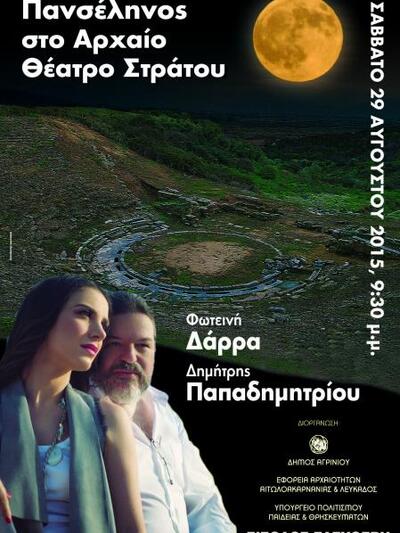 Το Αρχαίο Θέατρο Στράτου υποδέχεται υπό το ειδυλλιακό φως της πανσέληνου δυο μεγάλους καλλιτέχνες: τον Δημήτρη Παπαδημητρίου και τη Φωτεινή Δάρρα το Σάββατο 29 Αυγούστου στις 9:30 μ.μ.