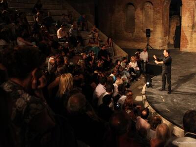 Συγκλονιστική εμπειρία οι «Βάκχες», το αντιπολεμικό έργο του Ευριπίδη με γνήσια διονυσιακή υπόθεση σε σκηνοθεσία Γιώργου Παπαθεοδώρου το οποίο μετά την επιτυχημένη πρεμιέρα στο Αρχαίο Θέατρο της Μεσσήνης, παρουσιάστηκε στο Ρωμαϊκό Ωδείο της Πάτρας την Τετάρτη 26 Αυγούστου 2015 στις 21:30.