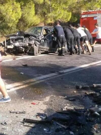 Η σύγκρουση των τριών οχημάτων ήταν σφοδρή με αποτέλεσμα τα αυτοκίνητα να εκτράπουν της πορείας τους και να περάσουν τις προστατευτικές μπάρες.