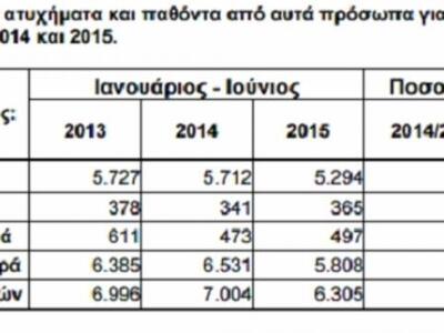 Δείτε τον πίνακα με τα τροχαία στην Ελλάδα για το εξάμηνο Ιανουαρίου – Ιουνίου (2013, 2014, 2015):