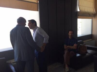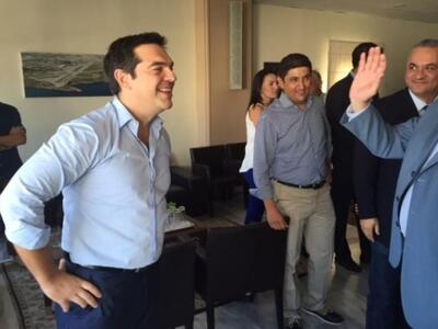 Χαμόγελα, χειραψίες, συζήτηση μακριά από τα... περίεργα αυτιά. Συνέβη καταμεσούσης της προεκλογικής περιόδου στο αεροδρόμιο του Ηρακλείου όταν το πρωί της Τρίτης ο Αλέξης Τσίπρας "έπεσε πάνω" στον Βαγγέλη Μεϊμαράκη!