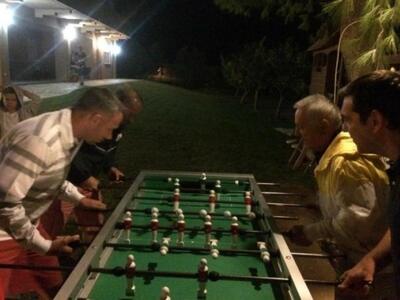 Σε άλλη φωτογραφία φαίνεται ο τότε πρωθυπουργός, Αλέξης Τσίπρας να παίζει με την παρέα του ποδοσφαιράκι.