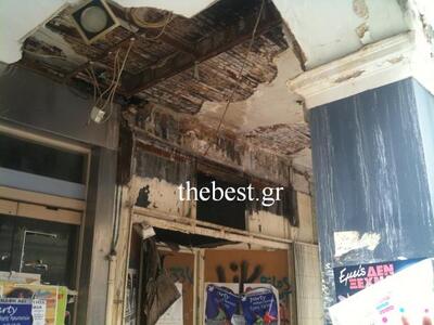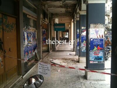 Τα πράγματα χειροτέρεψαν και σήμερα μπήκαν πρόχειρες κόκκινες κορδέλες και μια ανακοίνωση για να μην περνάνε οι πολίτες από την στοά, που είναι σάπια στην οροφή και ήδη πέφτει κομμάτι - κομμάτι.