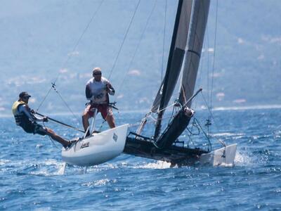 Πρόκειται για αγώνα ανάμεσα σε ένα καταμαράν και μία ομάδα 6 ποδηλατών