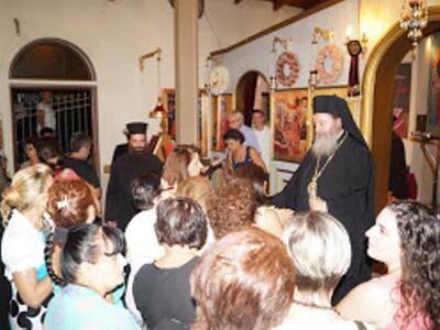 Ο Θεοφιλέστατος στην ομιλία του αναφέρθηκε στη θέση της Υπεραγίας Θεοτόκου στην Ορθόδοξη Εκκλησία μας, και παρακάλεσε τους πιστούς που είχαν κατακλύσει όλους τους χώρους πέριξ του Ιερού Ναού να λατρεύουν τον Ζώντα Αληθινό Τριαδικό μας Θεό και να τιμούν την Υπεραγία Θεοτόκο και τους Αγίους της πίστεως μας, όχο μόνο με τα χείλη αλλά και με την καρδιά τους.