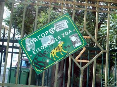 Η πινακίδα που απαγορεύει την είσοδο σκύλων στο χώρο είναι διαλυμένη, ενώ στον κήπο έχει εισέλθει ήδη ένα τετράποδο με τον ιδιοκτήτη του.