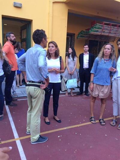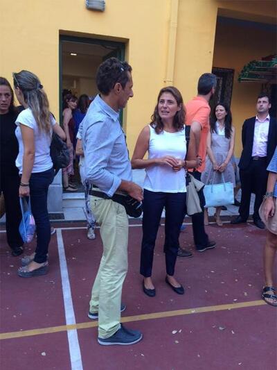 Χτύπησε το κουδούνι σήμερα στα σχολεία όλης της χώρας και οι απανταχού γονείς συνόδευσαν τα παιδιά τους στον αγιασμό για τη νέα σχολική χρονιά. Η σύντροφος του πρώην πρωθυπουργού Αλέξη Τσίπρα, Μπέτυ Μπαζιάνα συνόδευσε τον μεγαλύτερο γιό τους Φοίβο- Παύλο στο νηπιαγωγείο της «Σχολής Χιλλ» για να ευχηθεί στο γιό της καλή σχολική χρονιά.