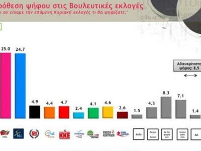 Το 8,3% των ερωτηθέντων δήλωσε ότι δεν θα ψηφίσει, ενώ η αδιευκρίνιστη ψήφος υπολογίζεται στο 8,5%.