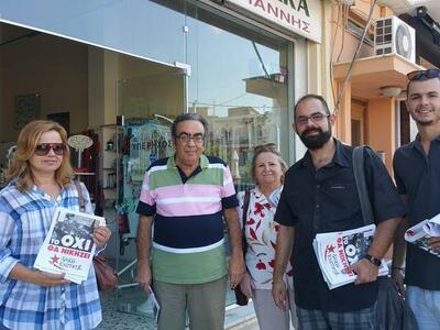 "Στη συνέχεια, τα μέλη μας, βρέθηκαν στην κεντρική πλατεία της πόλης, όπου μίλησαν με τους συμπολίτες μας, σε πολύ θετικό κλίμα" αναφέρει σε ανακοίνωσή της η ΛΑΕ. "Η ψήφιση του τρίτου μνημονίου από ΣΥΡΙΖΑ, ΝΔ, ΠΑΣΟΚ και Ποτάμι, μπορεί να προκαλεί μία εικόνα αδιεξόδου, αλλά η Λαϊκή Ενότητα, αποτελεί φάρος ελπίδας για τον δοκιμαζόμενο λαό!" καταλήγει η ανακοίνωση.