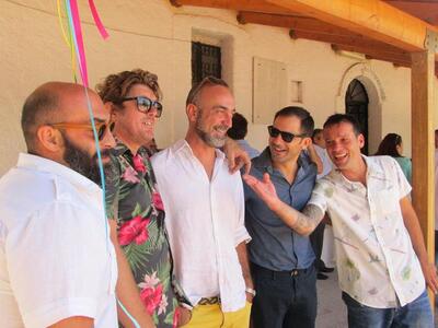Μακράν ο πιο χαλαρός και κεφάτος γάμος του καλοκαιριού, ήταν αυτός του Παναγιώτη Σιαμπάνη και της Χριστιάνας Παλούμπη που το γιόρτασαν με μεσημεριανό beach party στο Mirasol χθες Σάββατο. Η χαλαρή και νεανική διάθεση ήταν εμφανής και από τις ενδυματολογικές επιλογές του ζευγαριού, ενώ οι φίλοι του γαμπρού ..ανέβασαν το κέφι στα ύψη.