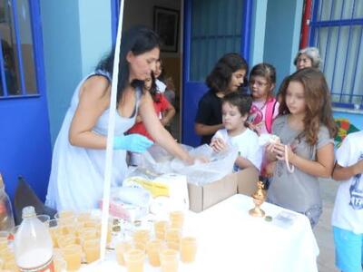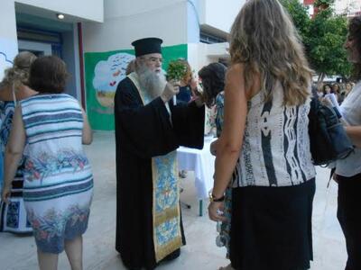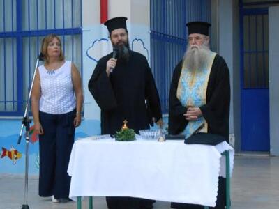 Οι μαθητές μετά τη λήξη της τελετής του Αγιασμού πήραν τα βιβλία τους ενώ ο Σύλλογος Γονέων και Κηδεμόνων πρόσφερε γλυκίσματα και αναψυκτικά.