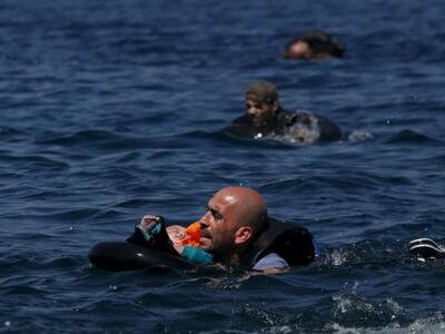 Σε αυτή ένας πατέρας καταβάλει υπεράνθρωπες προσπάθειες να διασώσει το μωρό του και να το κρατήσει στην επιφάνεια της θάλασσας έχοντάς το ανεβασμένο πάνω σε ένα σωσίβιο. Λίγη ώρα πριν η βάρκα που μετέφερε τον ίδιο και την οικογένειά του μαζί με αρκετούς ακόμα Σύριους και Αφγανούς μετανάστες ξεφούσκωσε και βυθίστηκε.