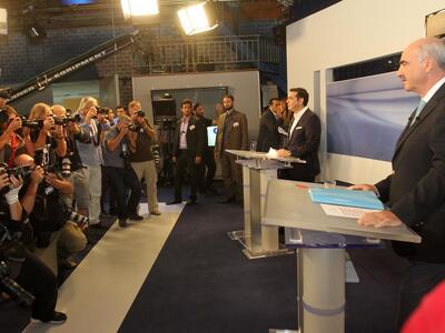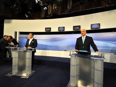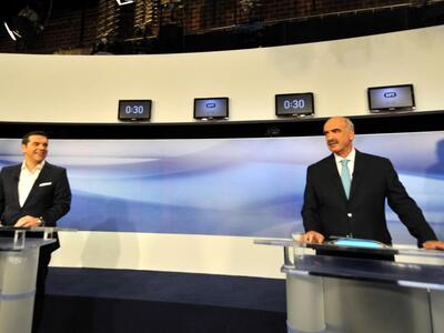 Ξεκίνησε πριν από λίγο η τηλεμαχία του προέδρου του ΣΥΡΙΖΑ, Αλέξη Τσίπρα και του προέδρου της ΝΔ, Ευάγγελου Μεϊμαράκη.
